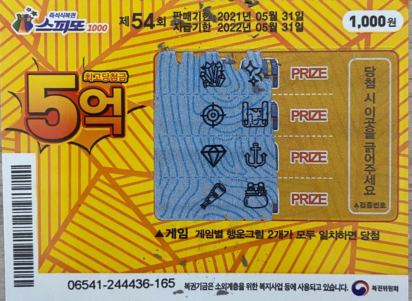 #동행복권 스피또1000 54회차 첫 1등 실물사진#